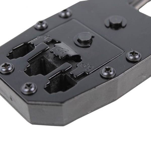 و RJ12 را دارد. با استفاده از سیم لخت‌کن تعبیه شده روی دسته این آچار می‌توانید به راحتی سیم‌ها و کابل‌ها را لخت یا قطع کنید.