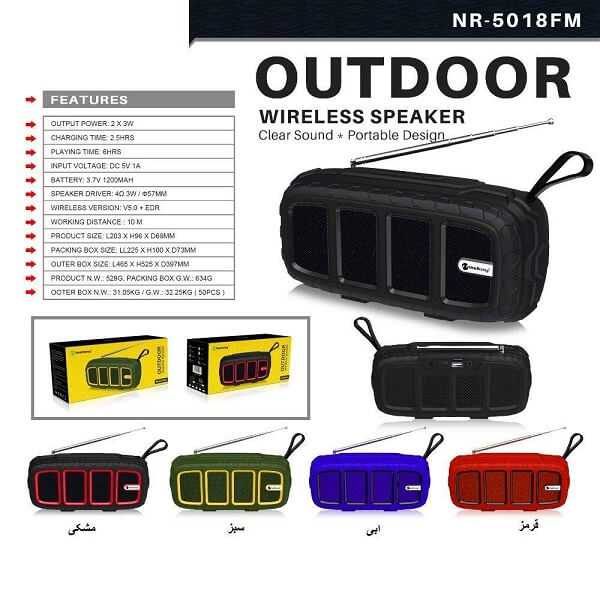 اسپیکر NR-5018Fm با داشتن دو بلندگوی 3 وات می تواند این امکان را به شما بدهد که موسیقی خود را با صدای بهتری