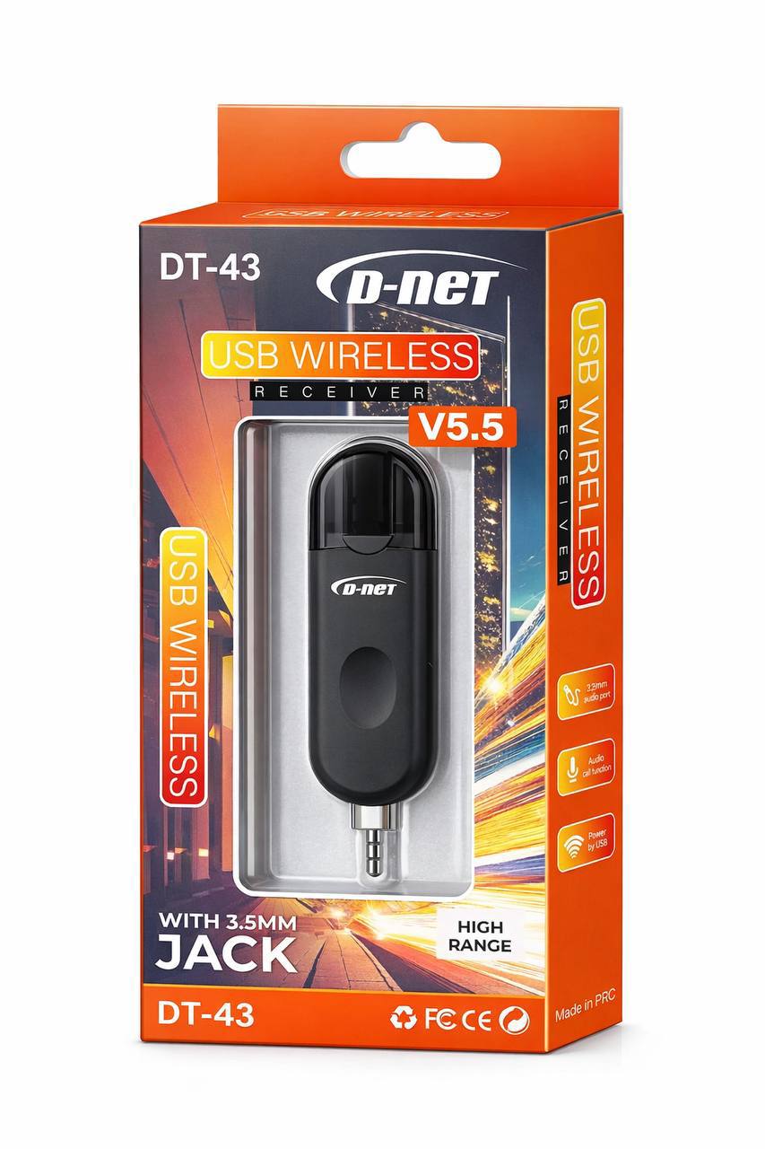 دانگل بلوتوث ماشین DT43 V5.5 با فناوری بلوتوث 5.5 برای پخش موسیقی و تماس‌های بی‌سیم از طریق ورودی AUX خودرو طراحی شده و تجربه‌ای راحت، پایدار و با کیفیت صوتی بالا در خودرو فراهم می‌کند.
