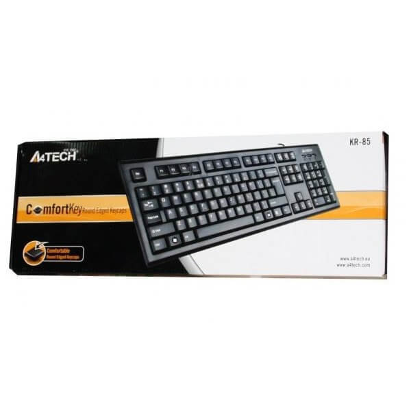 کیبورد (صفحه کلید) سیم دار ای فورتک مدل KR-85 یکی از محصولات این شرکت بوده و از نوع کیبوردهای سیمی می باشد. این صفحه کلید به گونه ای طراحی شده است که تایپ ده انگشتی را برای شما آسان تر می کند و لبه های گرد کلیدها آن را برای کار شما روان تر و سریع تر می کند. به علاوه در زیر کیبورد ۲ پایه برای تنظیم ارتفاع کیبورد تعبیه شده است. . طول کابل کیبورد KR85 یک متر و نوع پورت آن USB است که به راحتی می توانید آن را به هر مدل کامپیوتر و لپ تاپ متصل کنید. یکی از ویژگی های این کیبورد حکاکی لیزری حروف موجود در آن است که به راحتی پاک نمی شوند و برای کسانی که در طول روز به مدت طولانی با آن سر و کار دارند بسیار مناسب است.