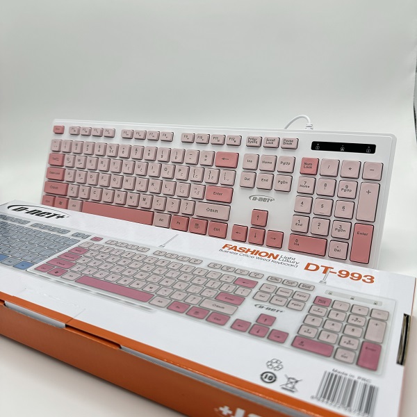 قیمت خرید کیبورد ( صفحه کلید ) سیم دار رنگی دی نت DT-993 صورتی